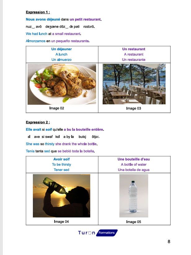 A travers ma méthode, je vais te montrer qu'il est possible de lire en français avec la bonne prononciation grâce à l'IPA (International Phonetic Alphabet) et de comprendre des expressions et phrases utiles de la vie quotidienne, grâce aux images et à la traduction en anglais et en espagnol.